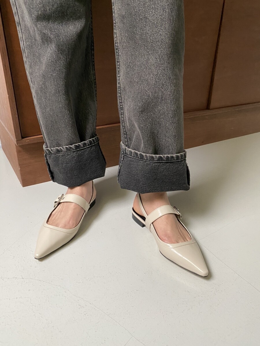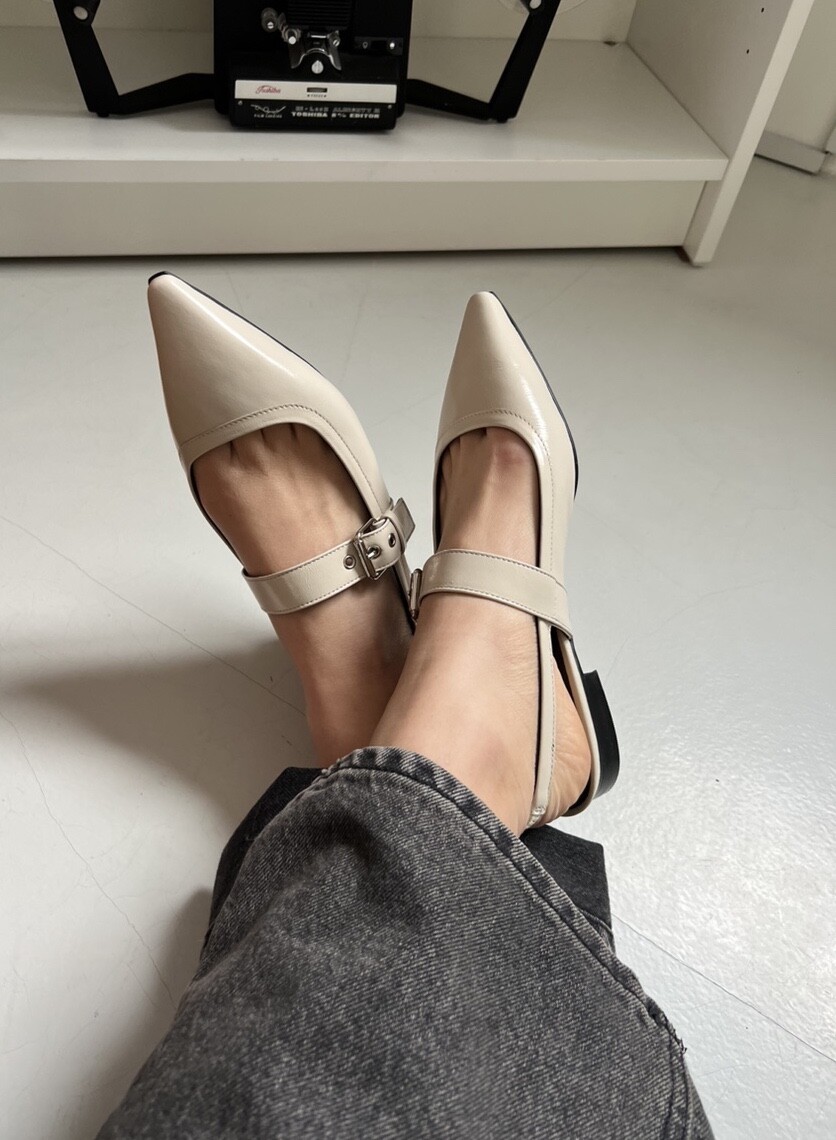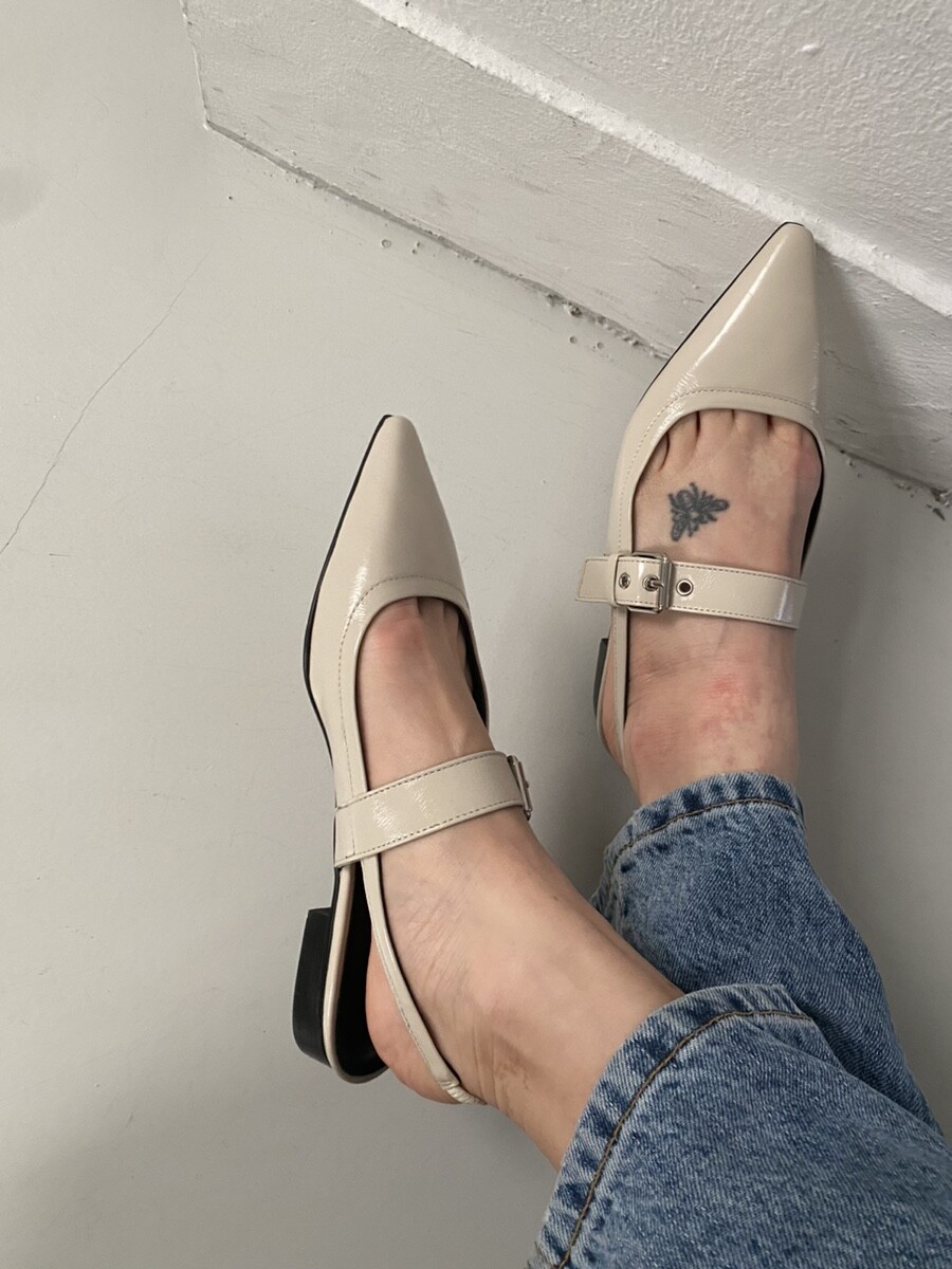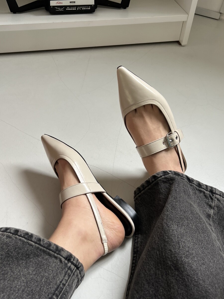 - 세련되고 날렵한 포인티드토의 슬링백 플랫슈즈