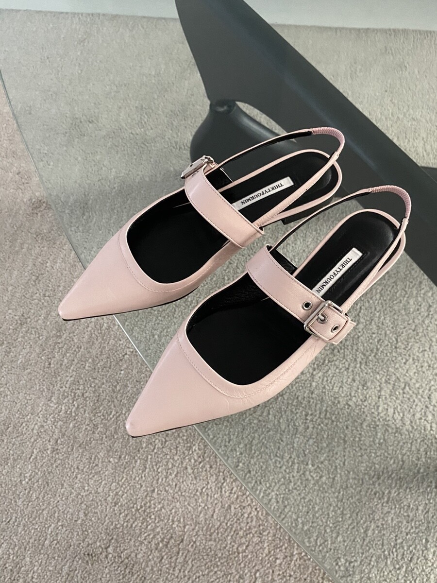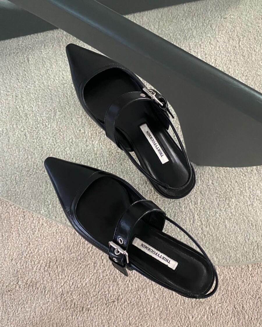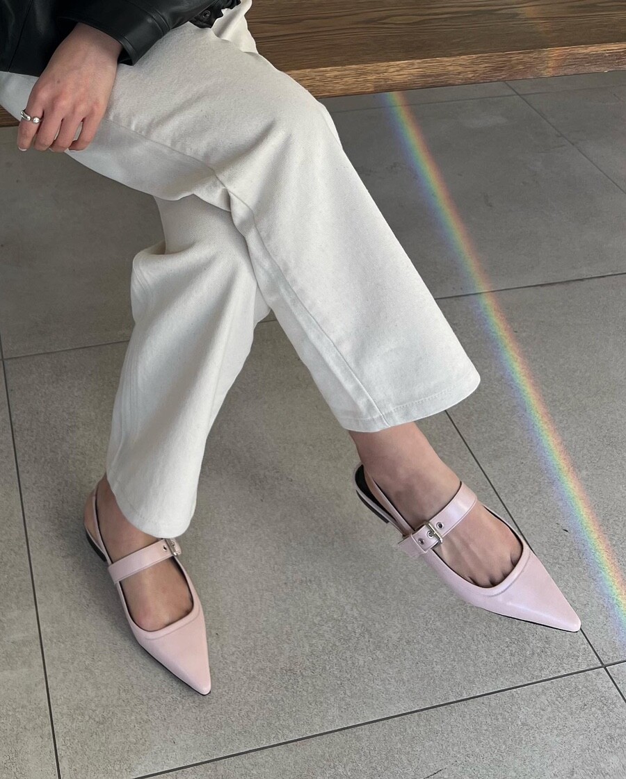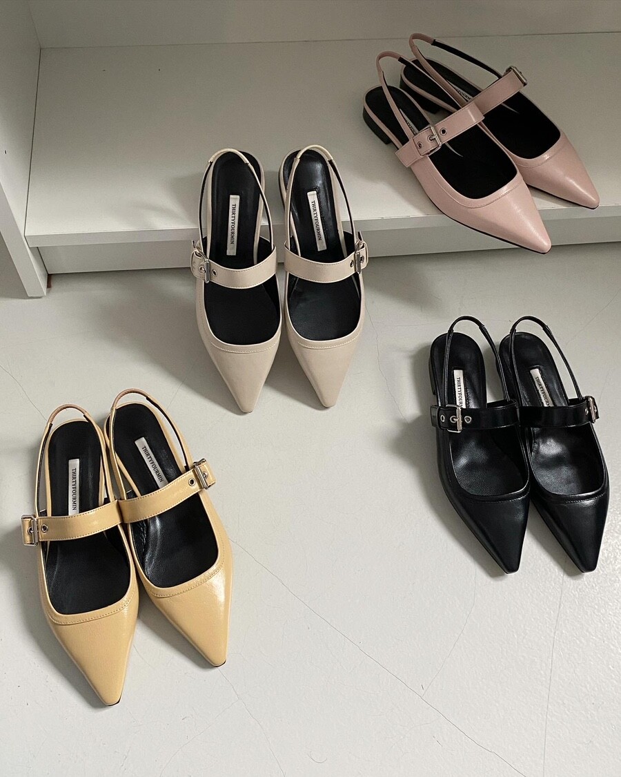 - 세련되고 날렵한 포인티드토의 슬링백 플랫슈즈