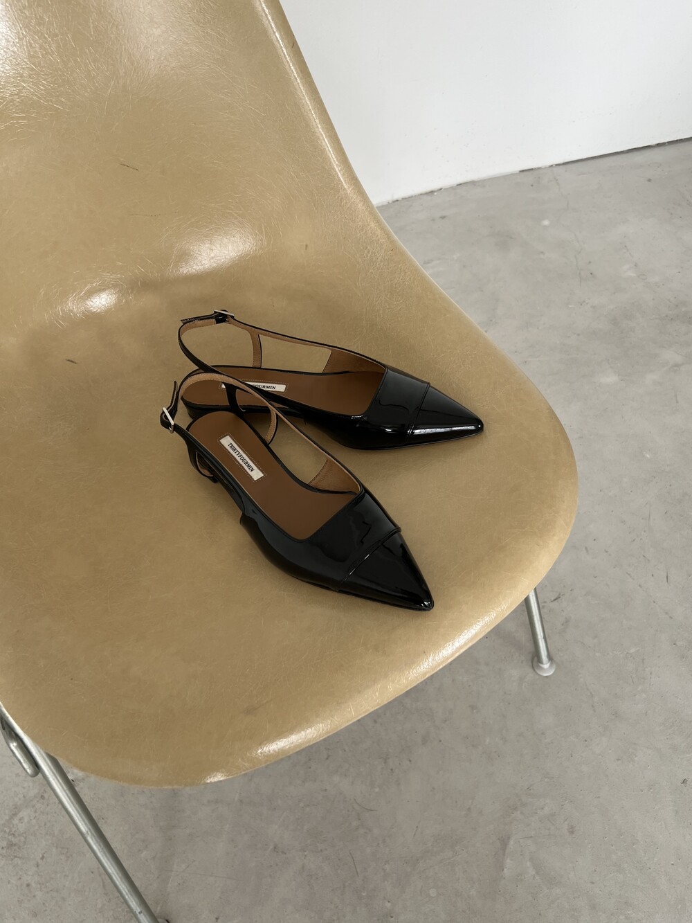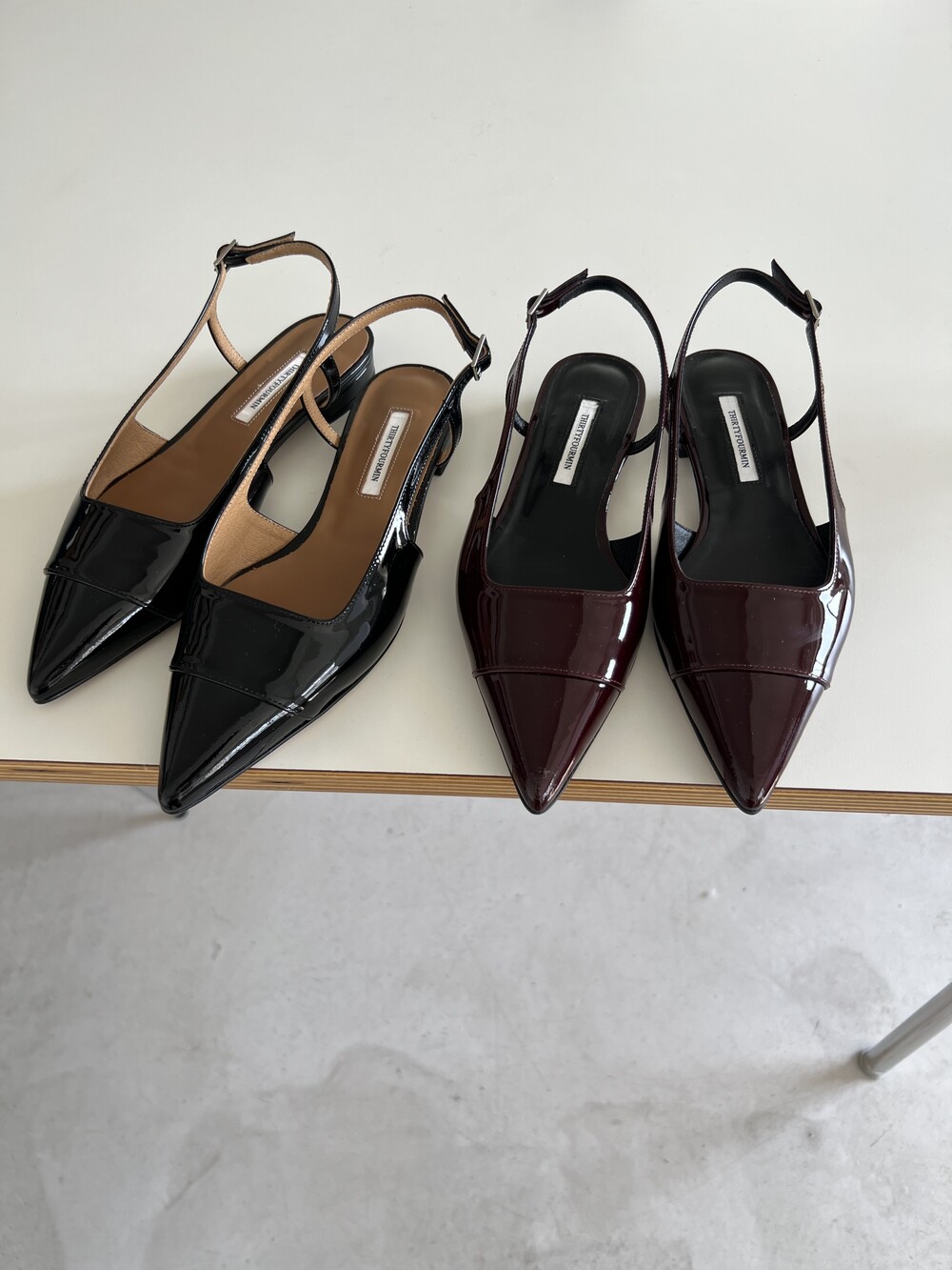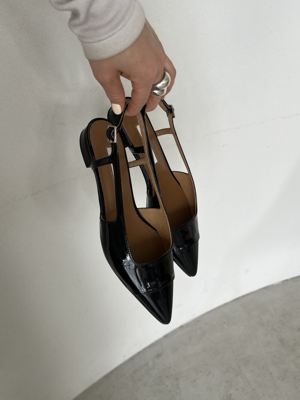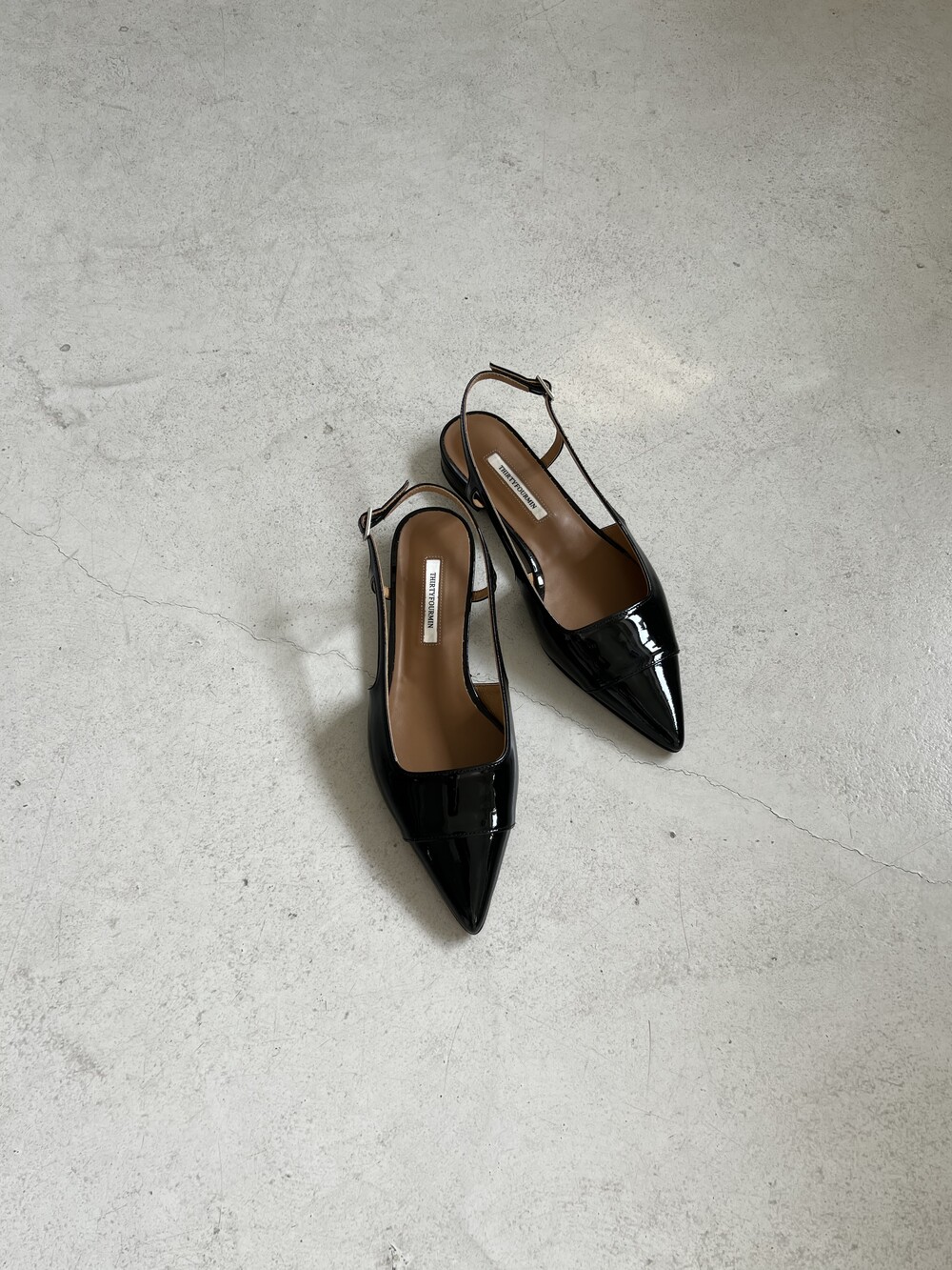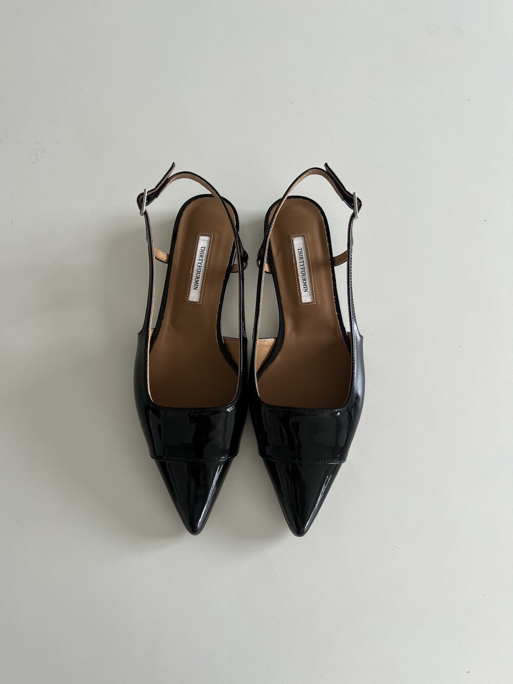 -스틸레토 쉐입의 군더더기 없는 슬링백플랫 디자인