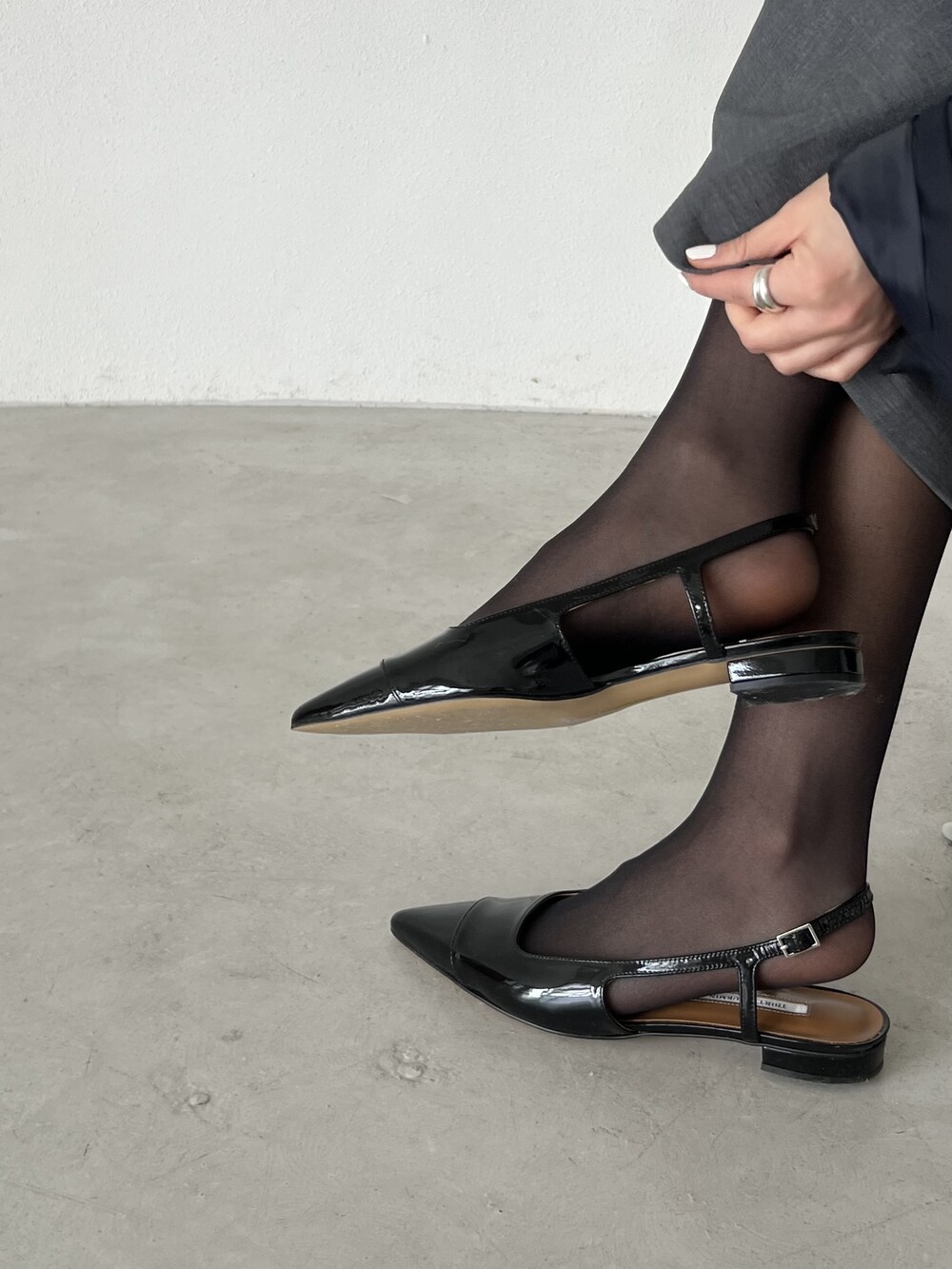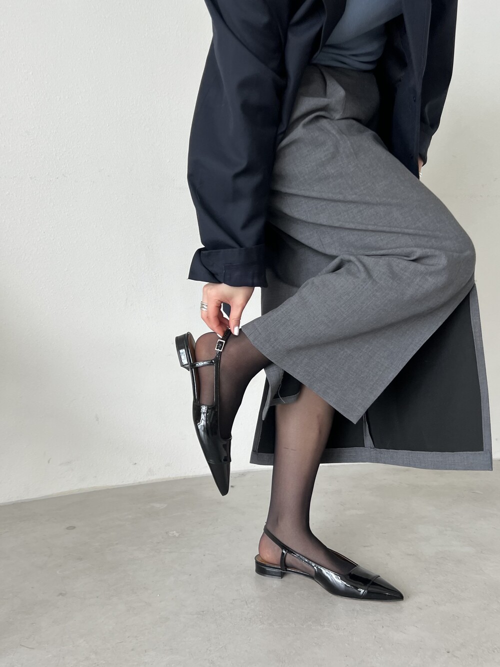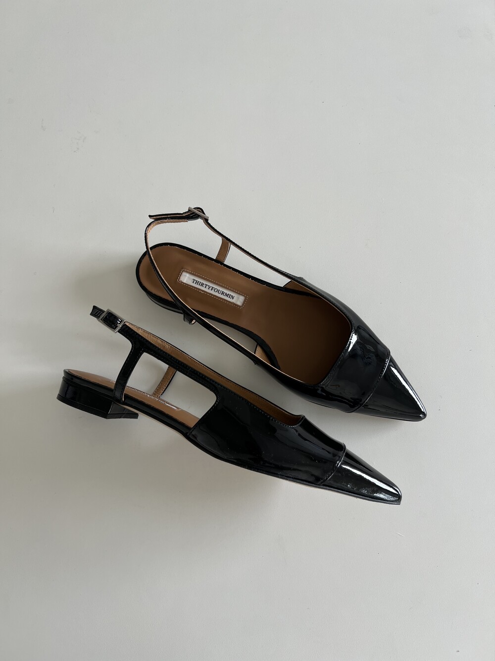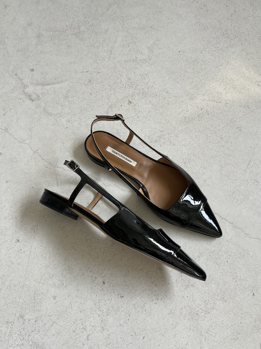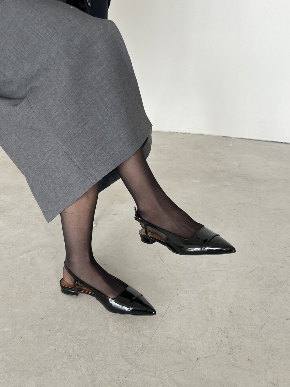 클래식한 무드의 세련된 슬링백 플랫슈즈