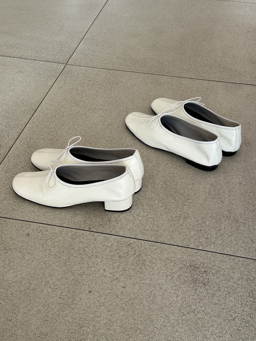 한 켤레의 슈즈에서도 양쪽의 주름 모양, 위치, 주름의 양이