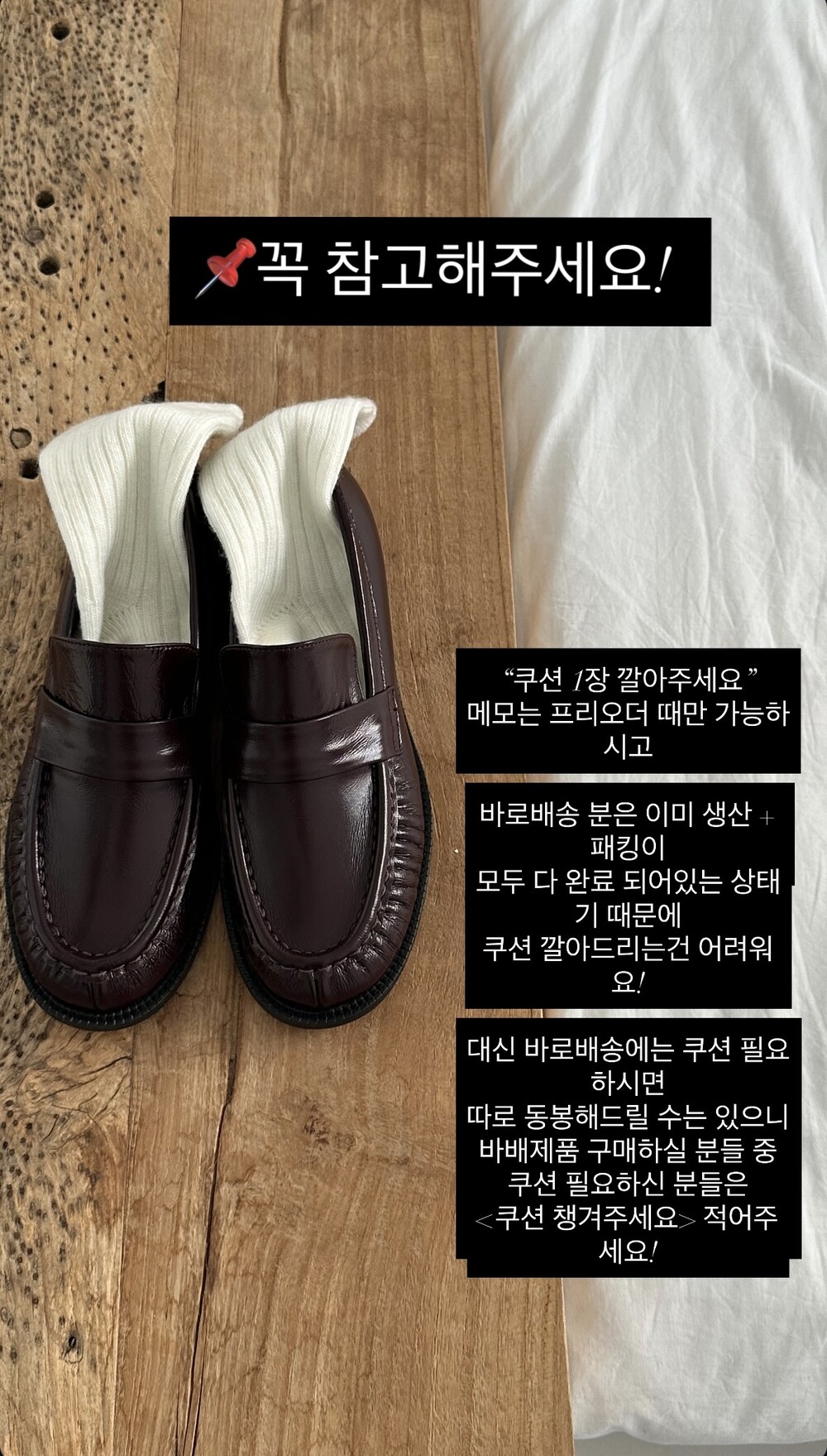 "쿠션 1장 깔아주세요" 메모는 프리오더 때만 가능하시고