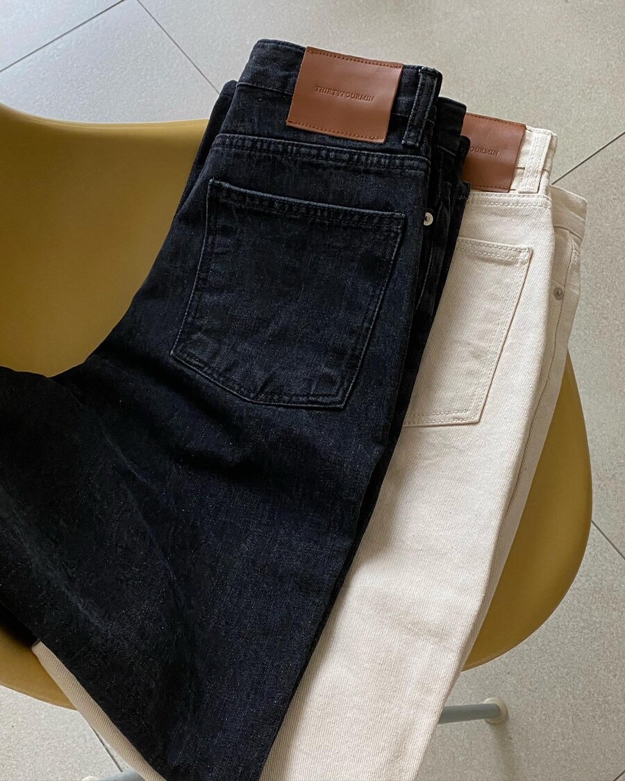쉐입이 예쁘며 착용 시 핏팅감이 편안한 데님입니다.