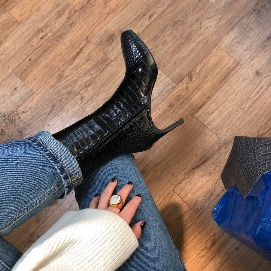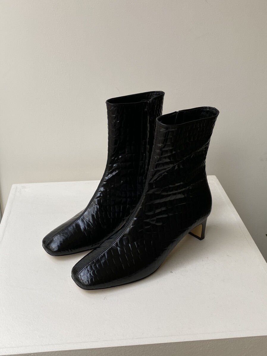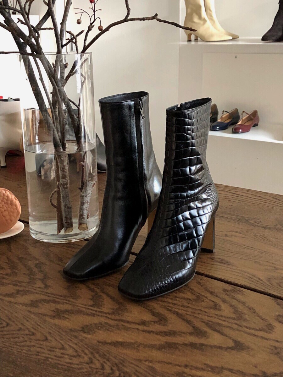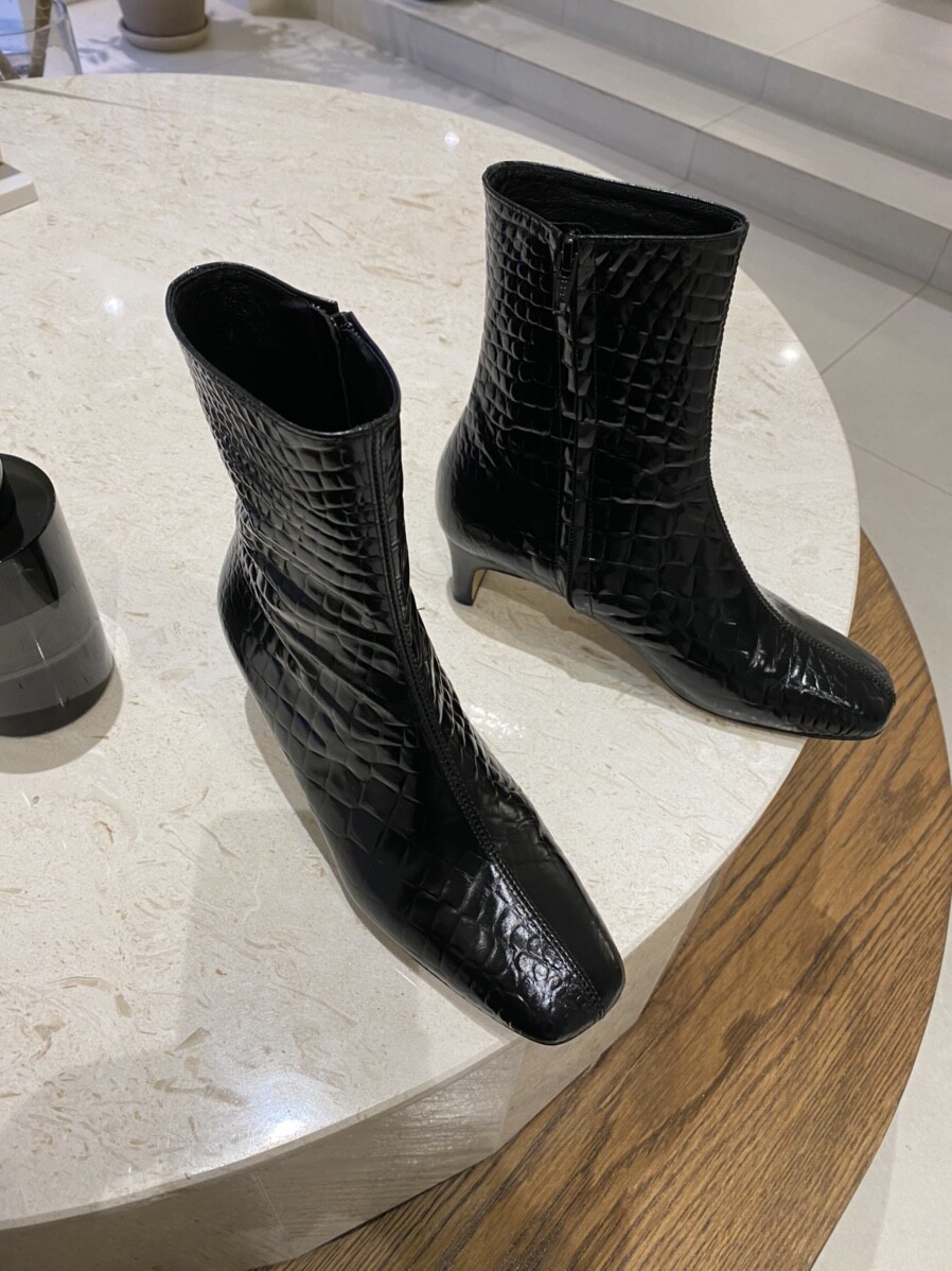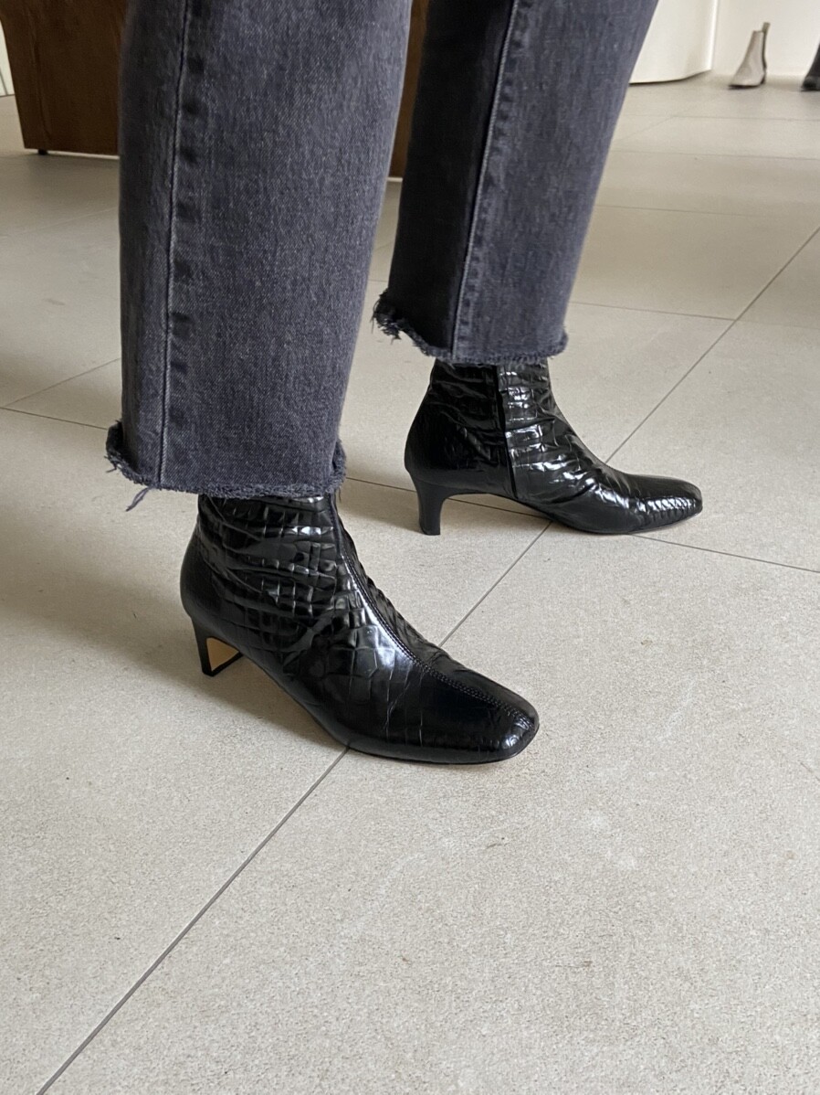 투박하거나 촌스럽지 않은 스퀘어토 앵클 부츠입니다.