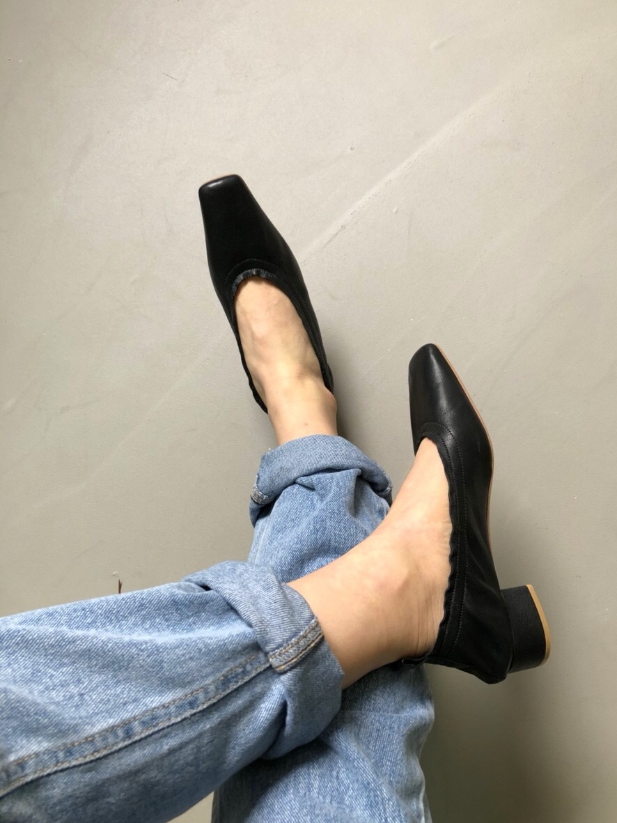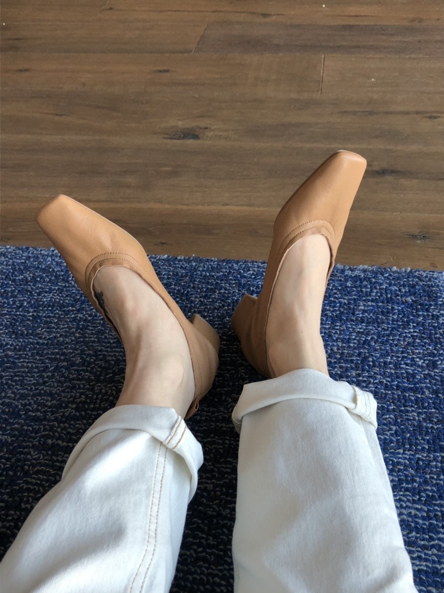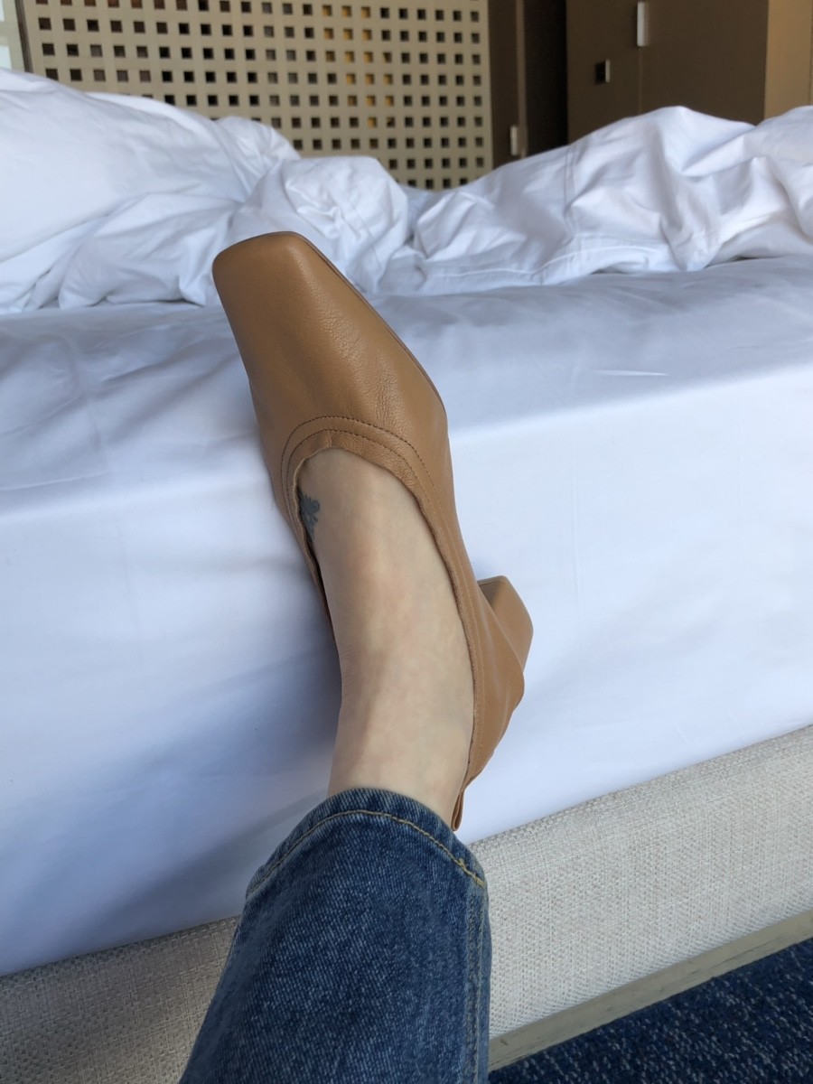 앞코는 납작하면서 아주 세련된 스퀘어토에