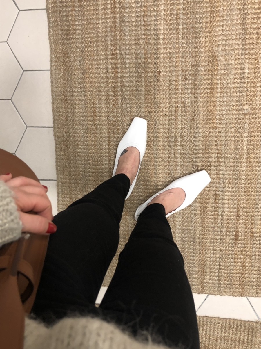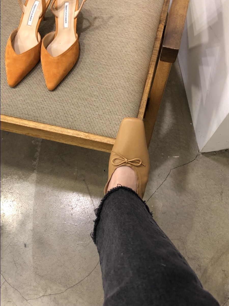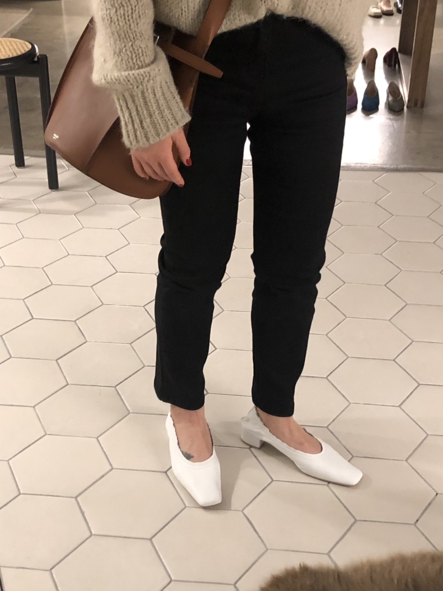 앞코는 납작하면서 아주 세련된 스퀘어토에